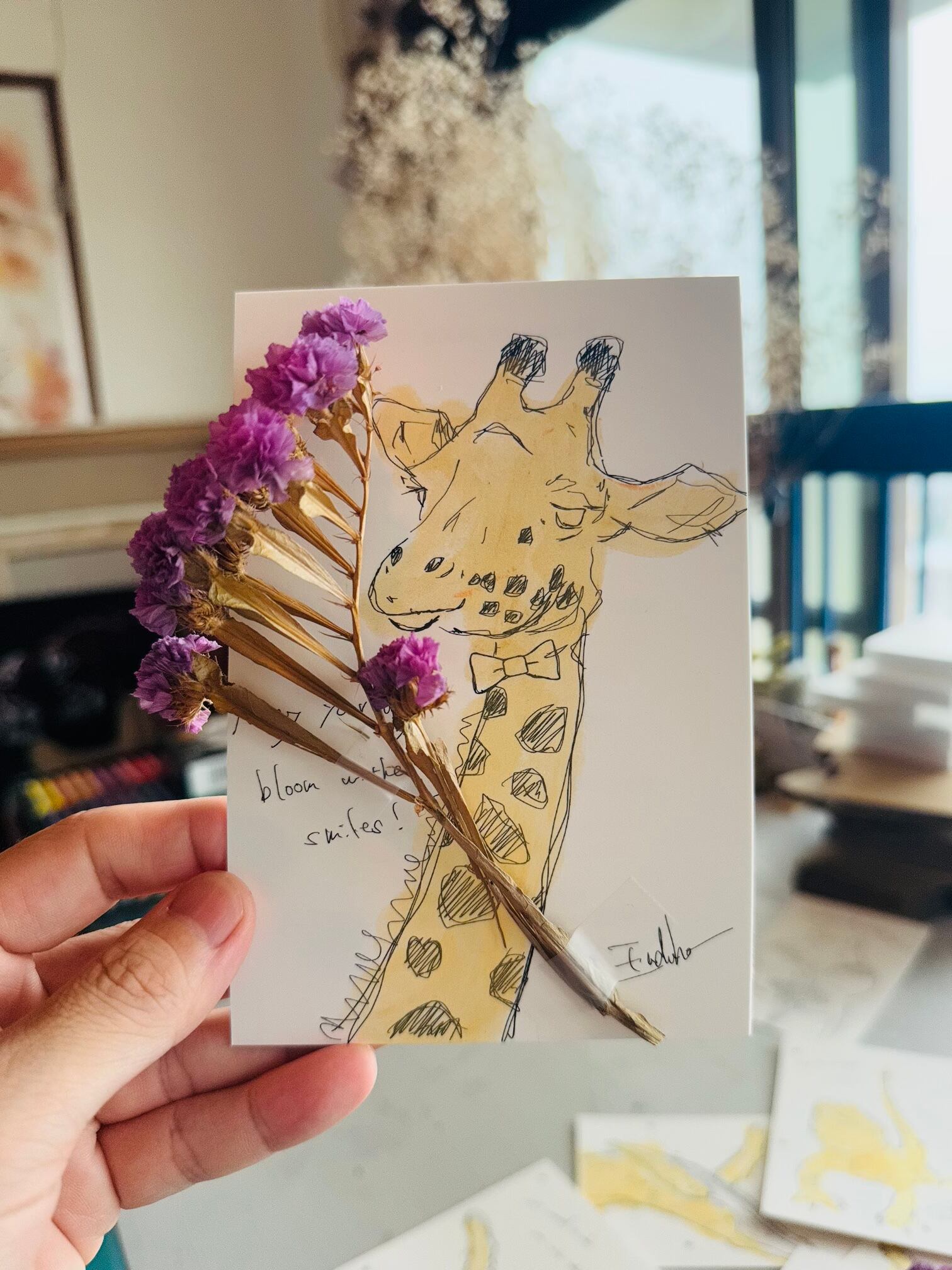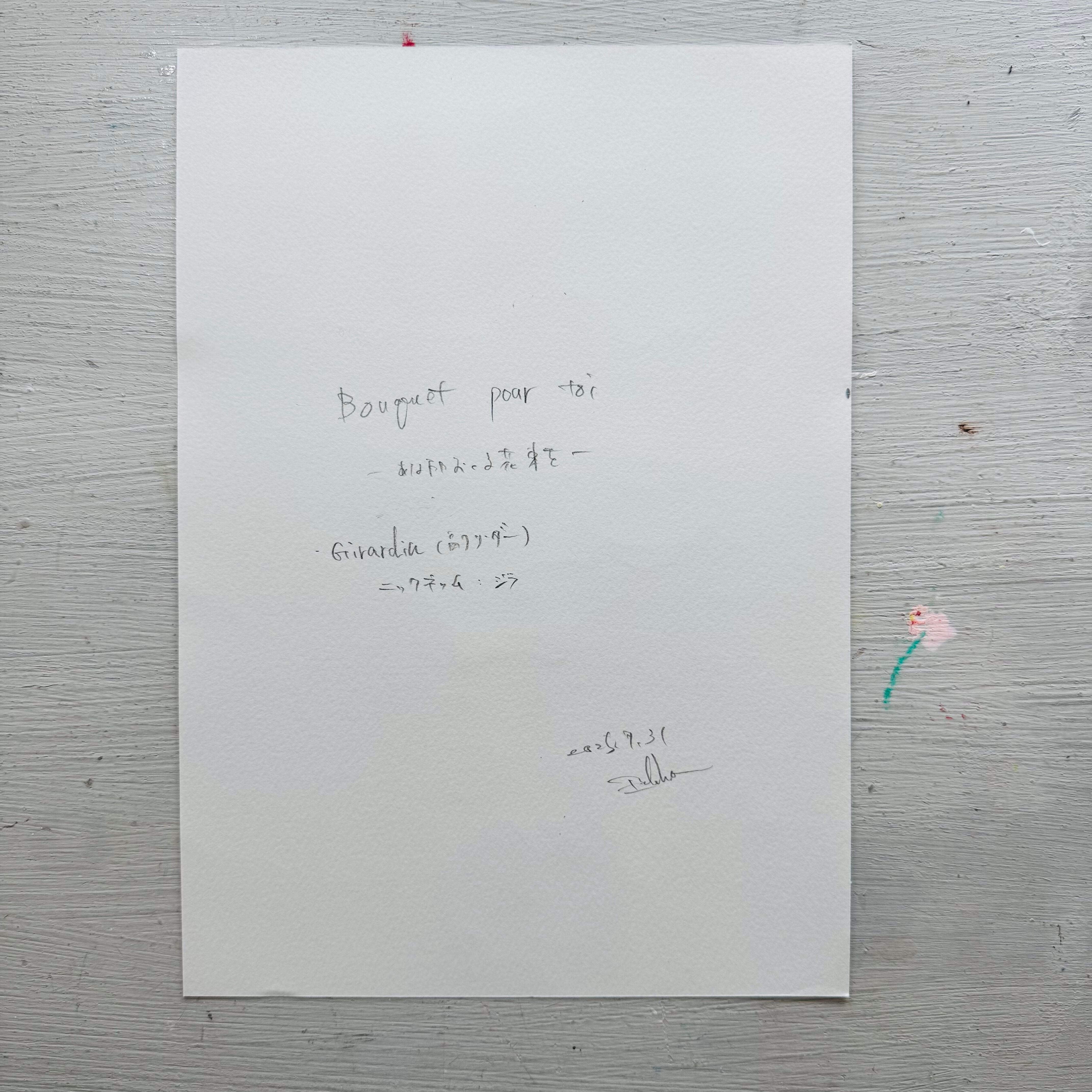 「Bouquet pour toi」は、 フランス語で“あなたに贈る花束”という意味。 -花束を贈る使者- 植物に詳しい静かな友人 Girardin。 初めてのキャラクターデッサンになります。 原画なので「一点かぎり」 A4サイズ 額装して発送